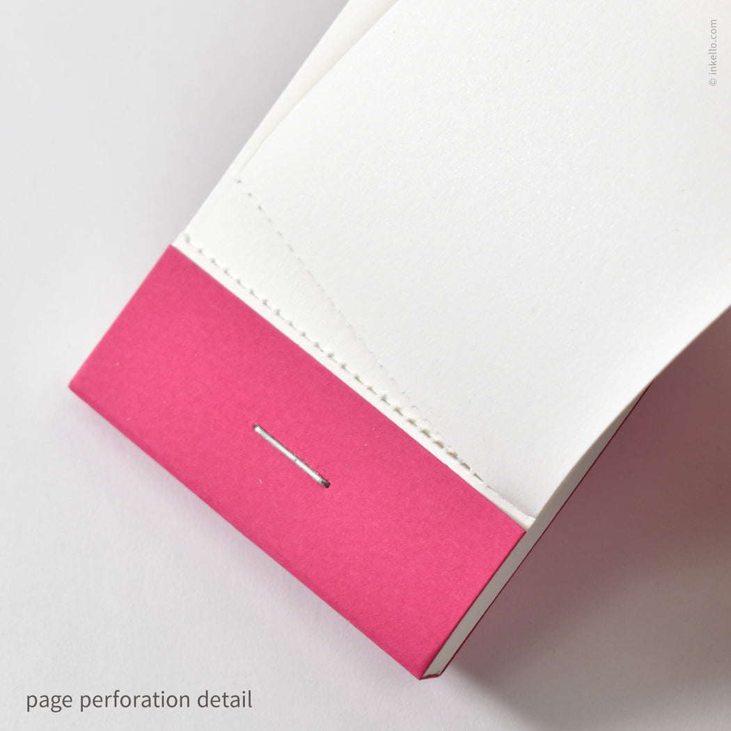 Materials: heavy hot pink paper for cover; thick, white, perforated pages inside; heavy-duty staple; natural-colored golf-sized pencil