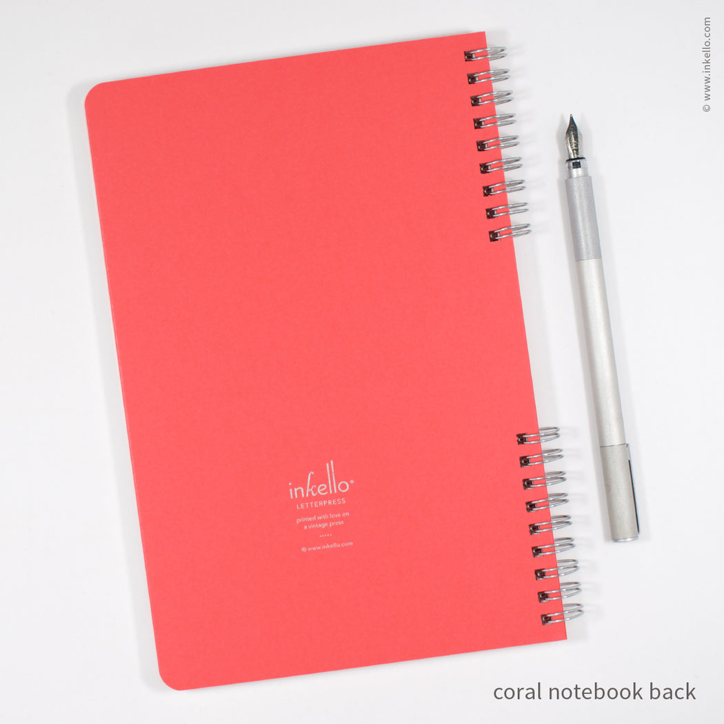 Back cover: Inkello® logo printed in silver ink on coral pink paper