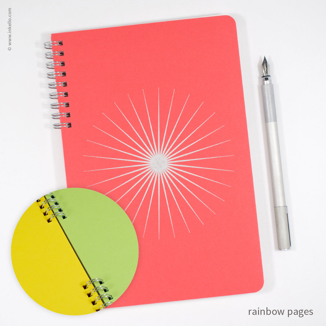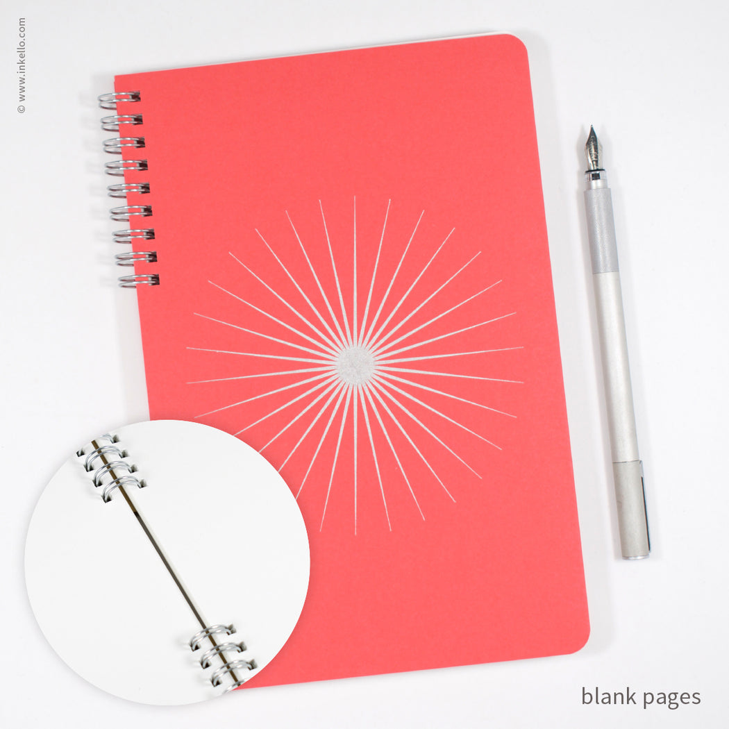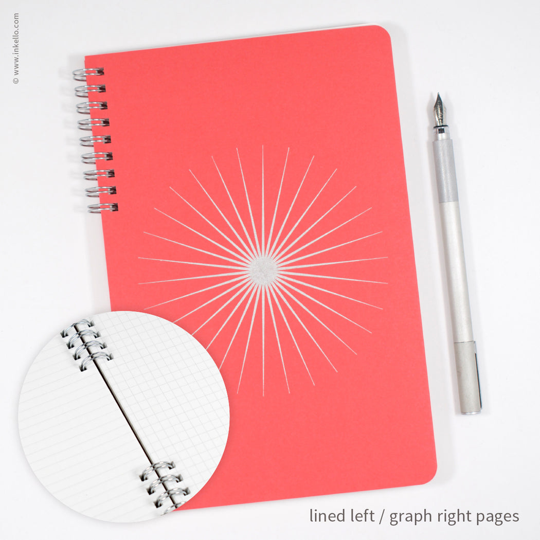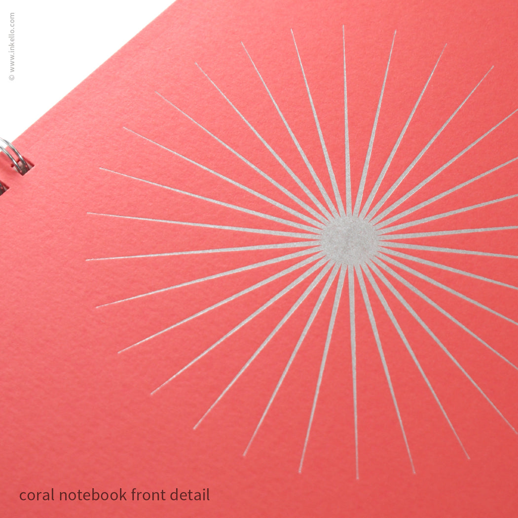 Big Burst Spiral Notebook with Coral Cover and Silver Ink (#505)