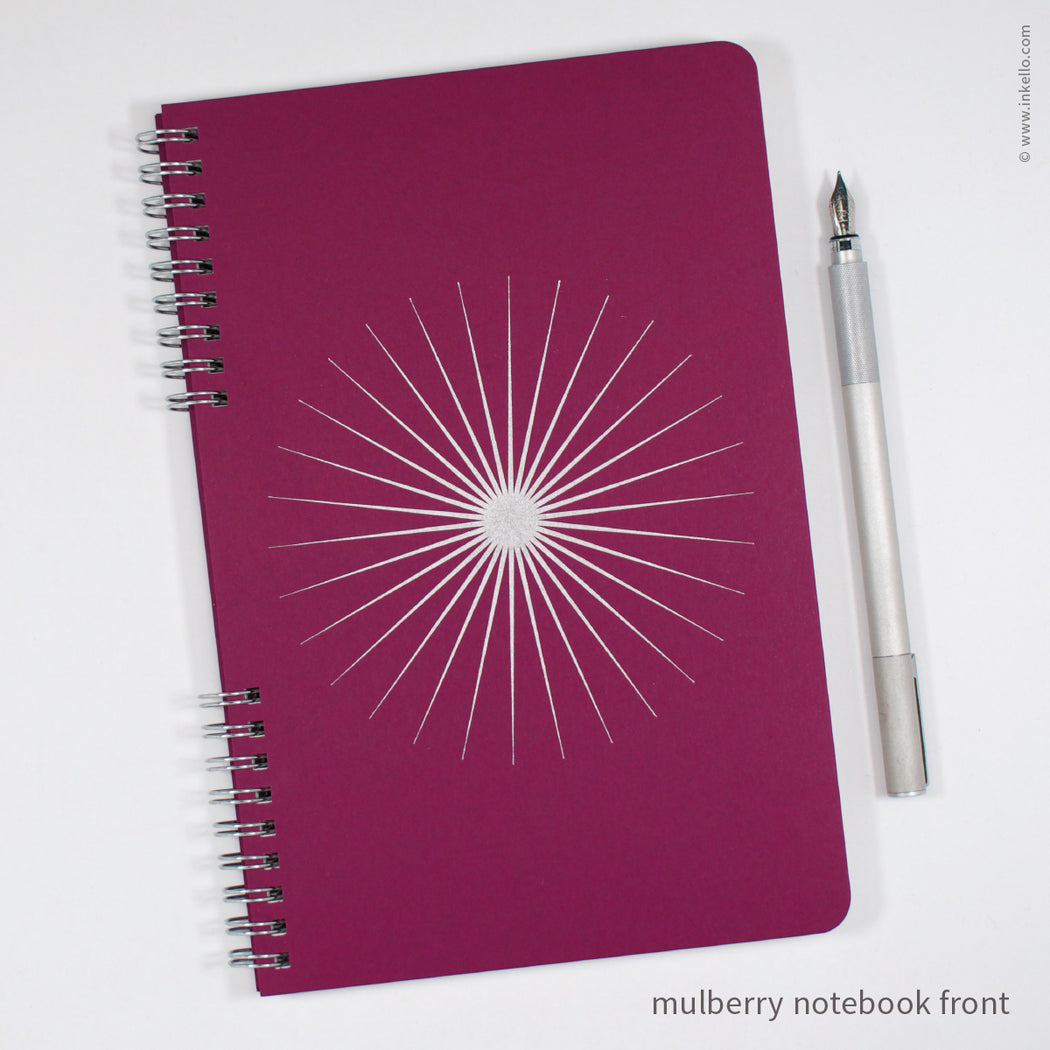 Big Burst Spiral Notebook with Mulberry Cover and Silver Ink (#505)