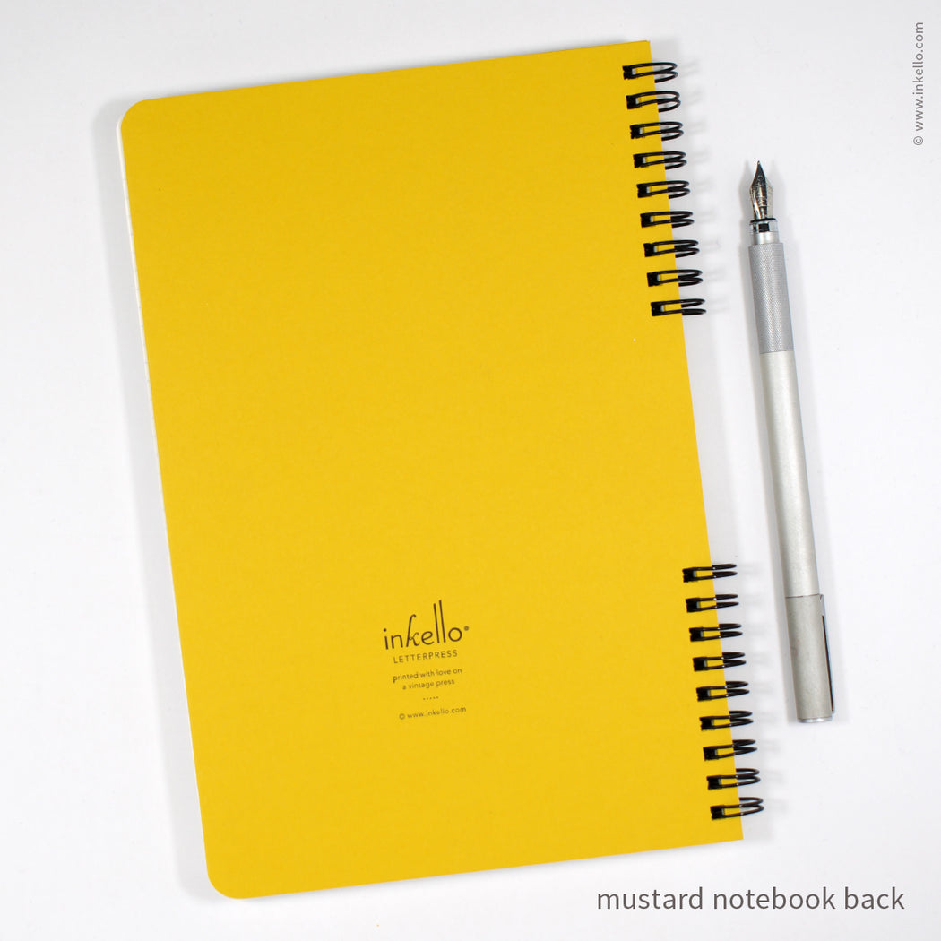 Back cover: Inkello® logo printed in black ink on mustard yellow paper