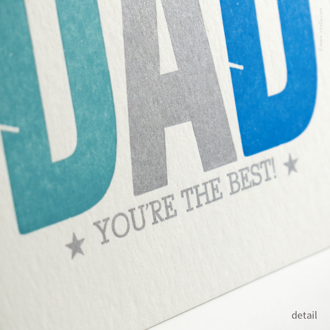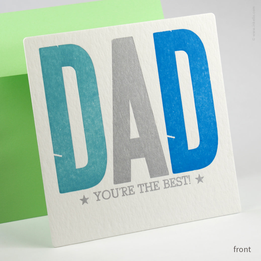 Front: "Dad, you're the best!" printed in blue, green and silver inks
