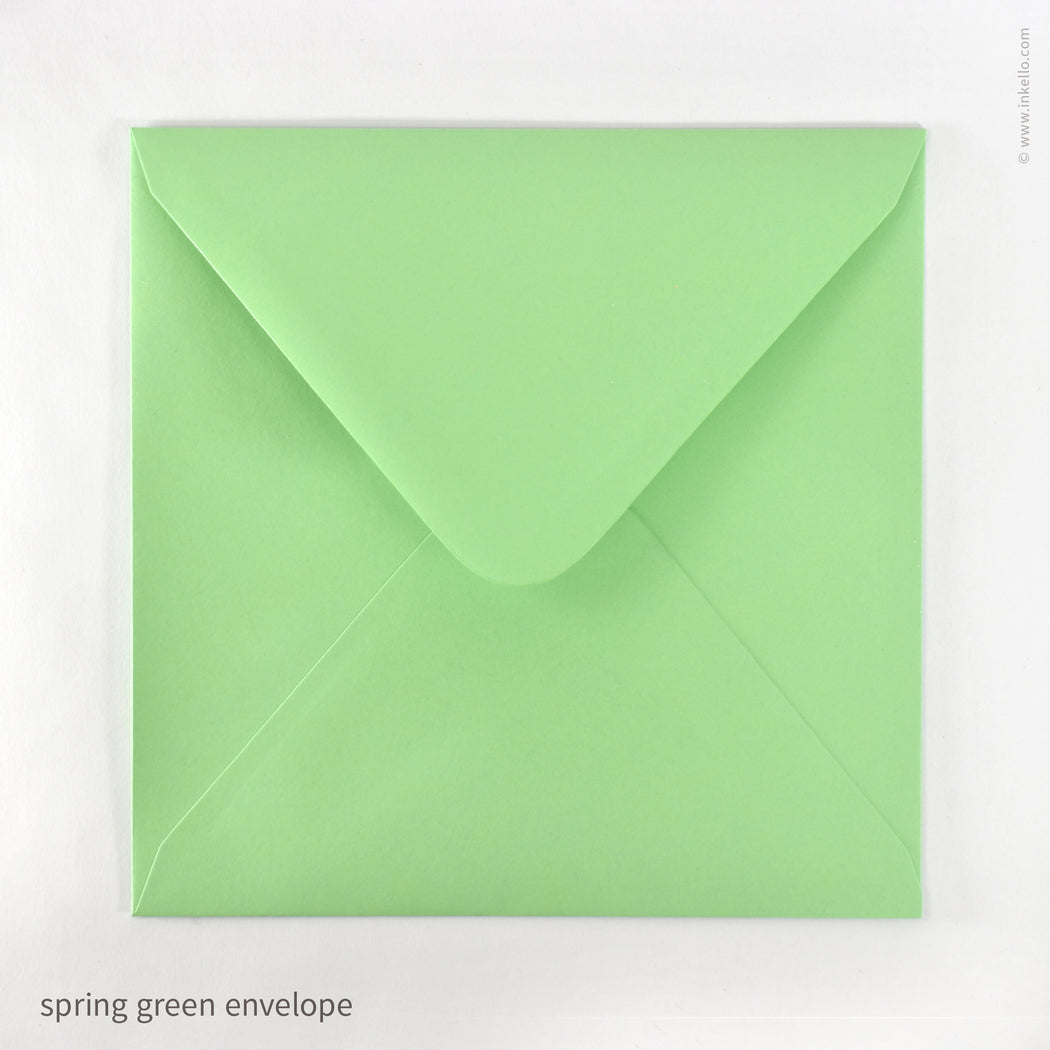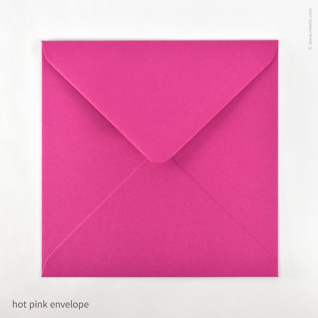 Materials: 100% cotton cover-weight paper for card, hot pink or spring green envelope, narrow white silk ribbon