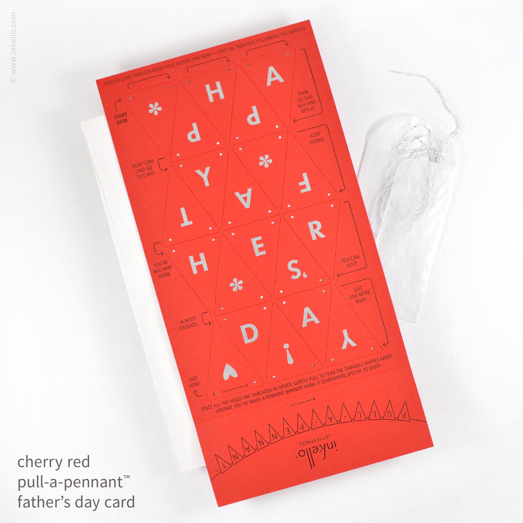 Front of card: *HAPPY*FATHER’S*DAY!♡ in metallic silver ink, Pull-A-Pennant™ directions in black ink