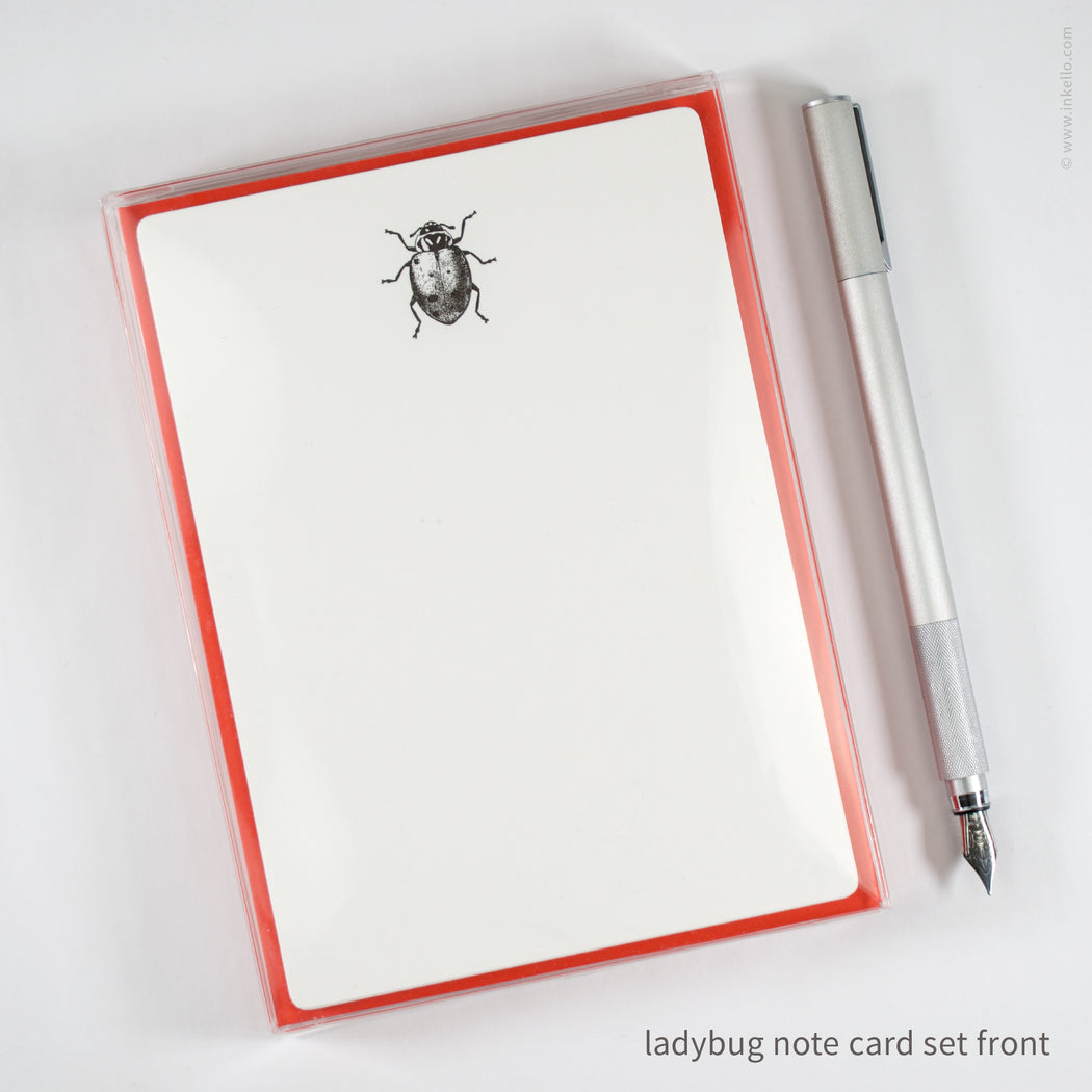 Flat Note Card Set with Black Ladybug (#502)