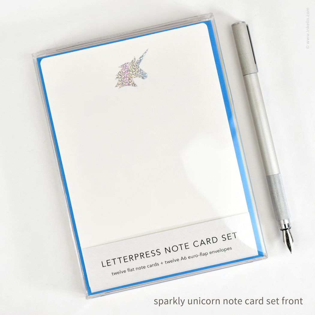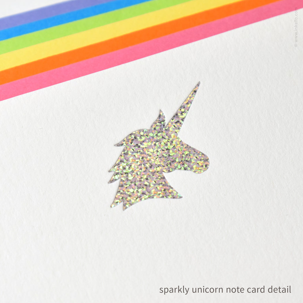Flat Note Card Set with Sparkly Unicorn (#502)