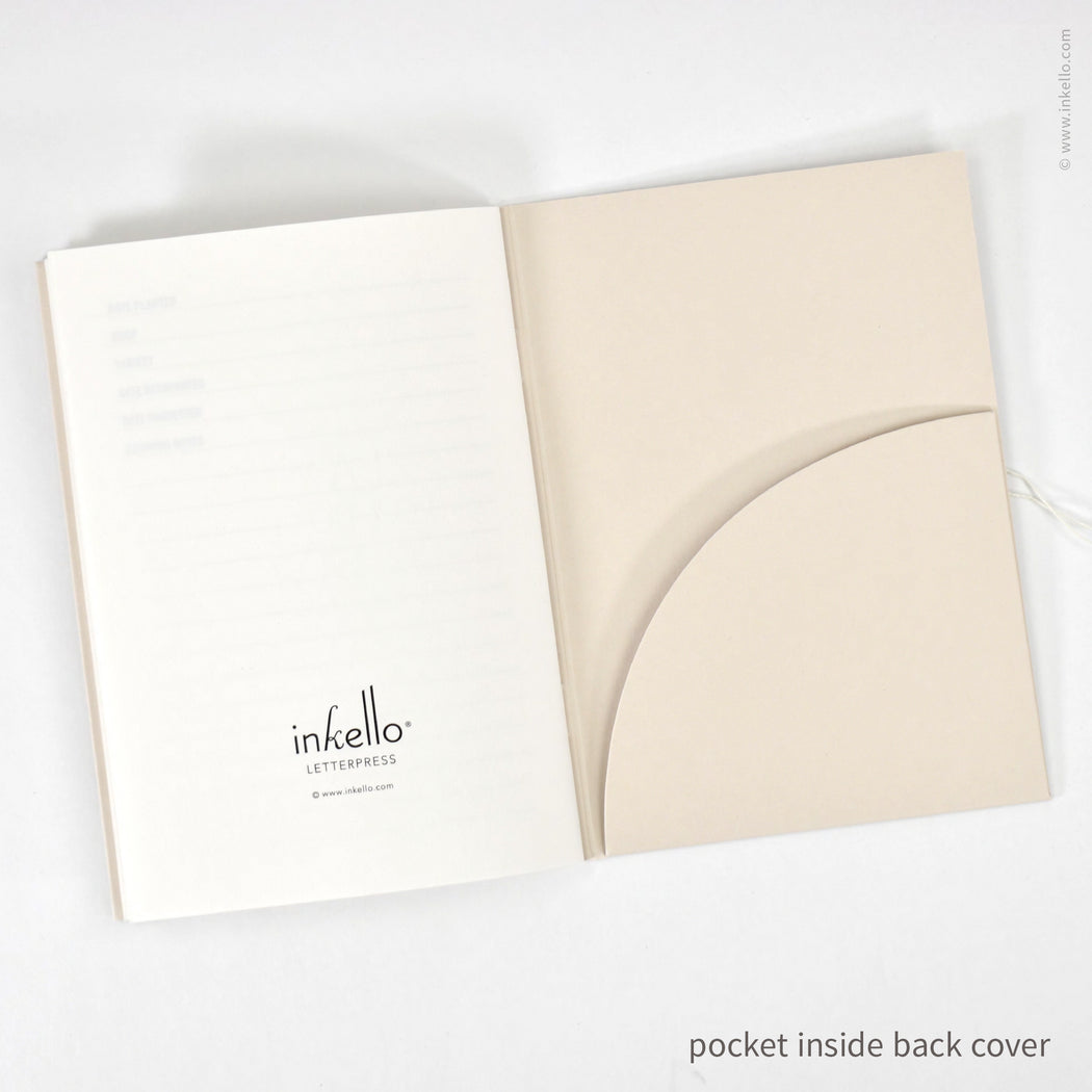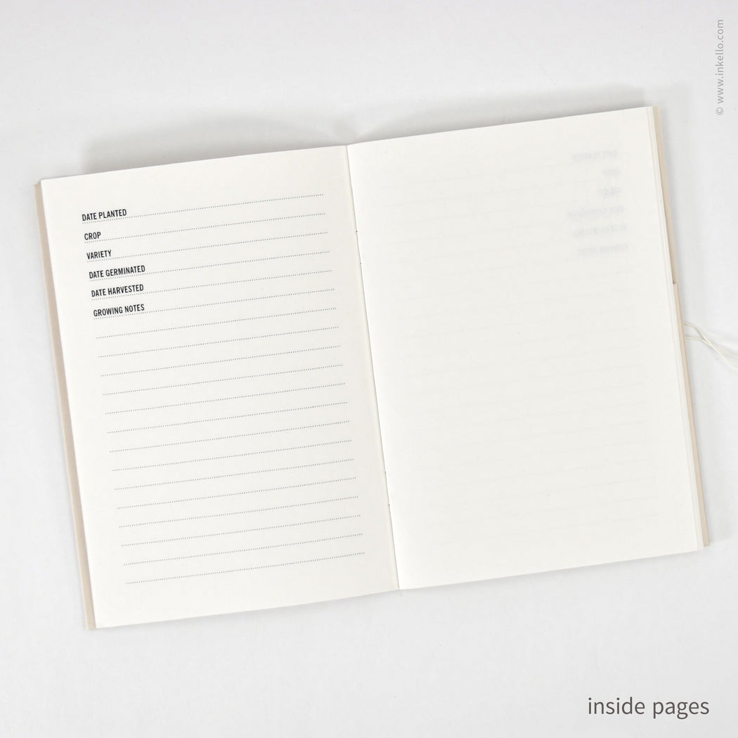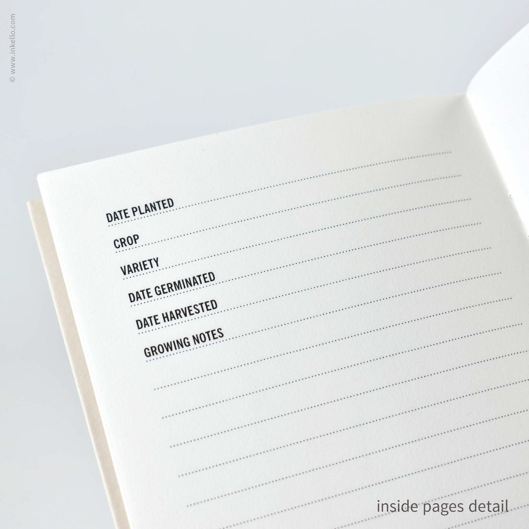 This small notebook is perfect for taking notes as you plan and plant your garden. Bone-colored heavy paper cover with brown "Seed Journal" and simple green seedlings growing from the bottom edge. Contains twenty-four pages inside for recording the details of what you've planted, and a pocket inside the back cover to hold your seed packets. Also includes an interactive wheel inside the front cover which displays twenty-two common vegetable seeds with their average germination and harvest dates. Journal is held closed with brown paper buttons and an ivory linen string.