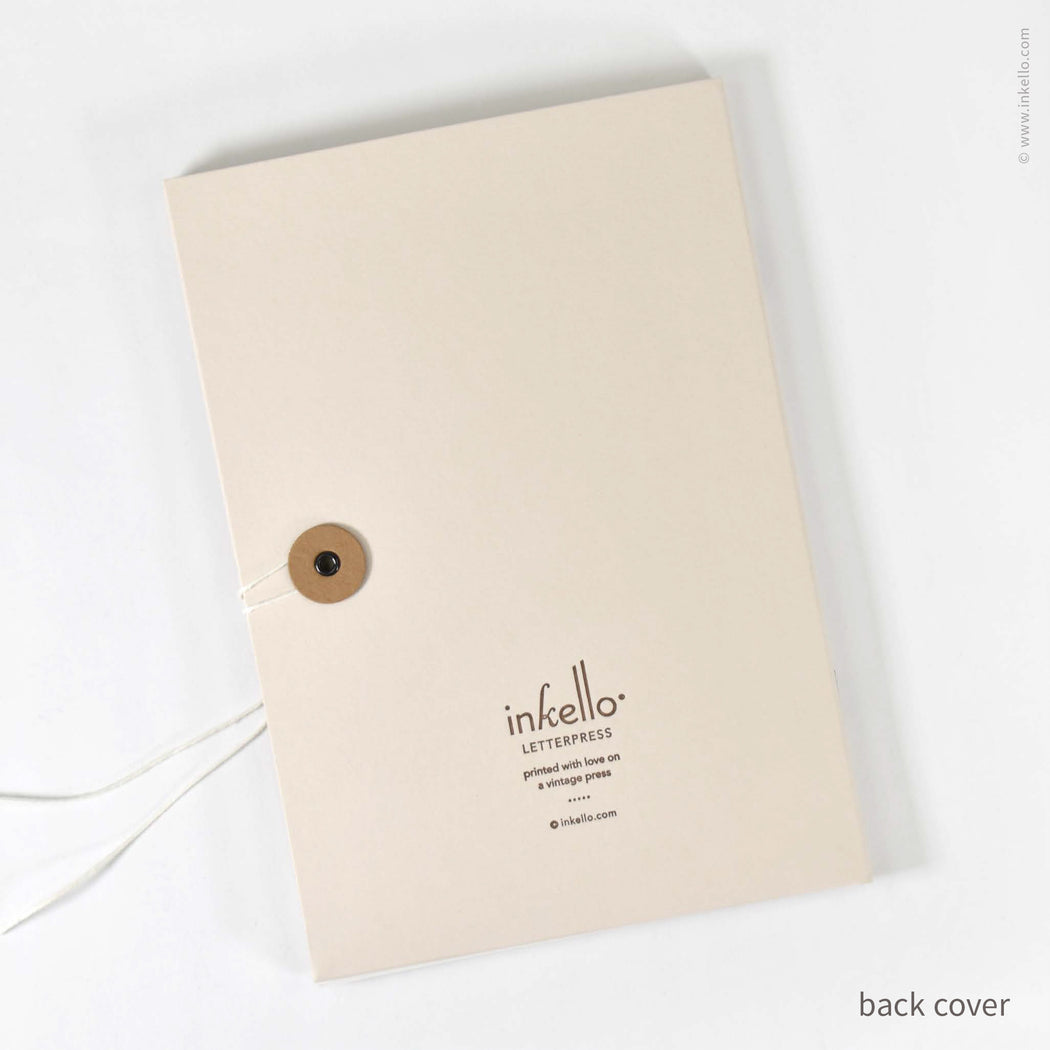 Size: 4-1/2" x 6-1/2" x 1/4" when closed, 9-1/4" x 6-1/2" when open, 6 sheets of paper making 24 inside pages