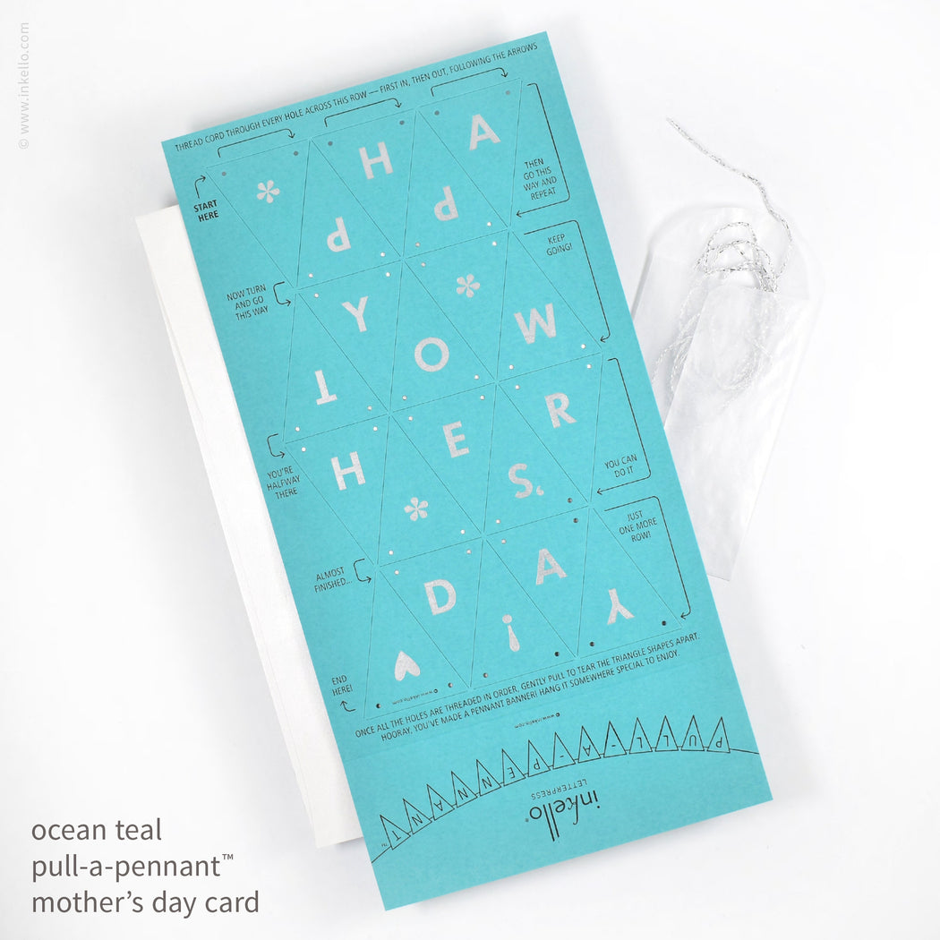 Surprise mom with this innovative and interactive Mother's Day card! Once she threads the string through the holes in the card and pulls, the little triangles separate and line up in the right order to spell "Happy Mother's Day!" on a mini hangable banner. It's a memorable way to celebrate the occasion and sure to be a keeper.