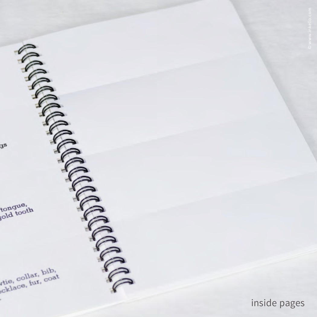 Sizes: page size is 6" x 9", overall notebook including spiral is 6-1/4" x 9" x 1/2" thick, 42 pages inside