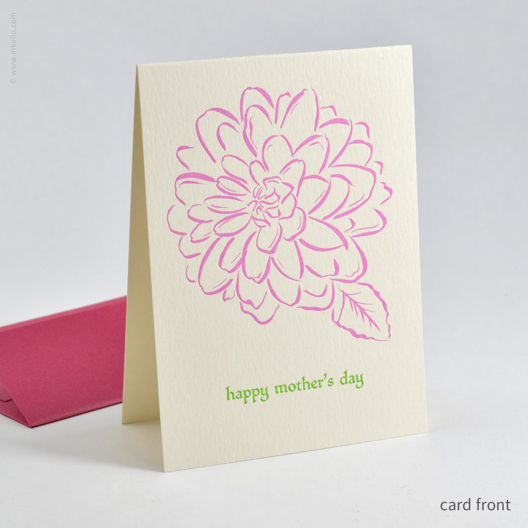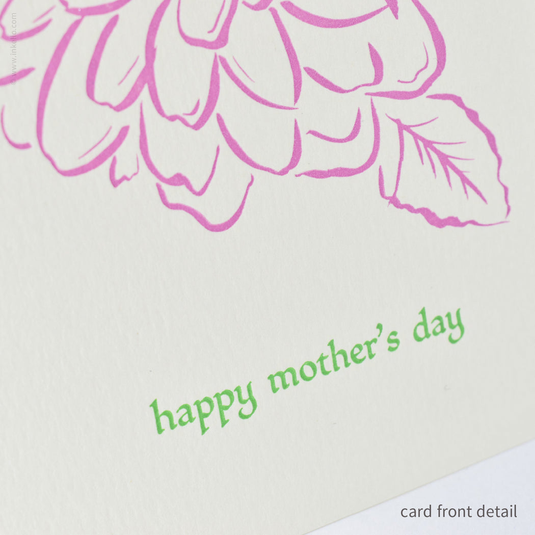 Front: flower printed in pink ink, "happy mother's day" printed in green ink