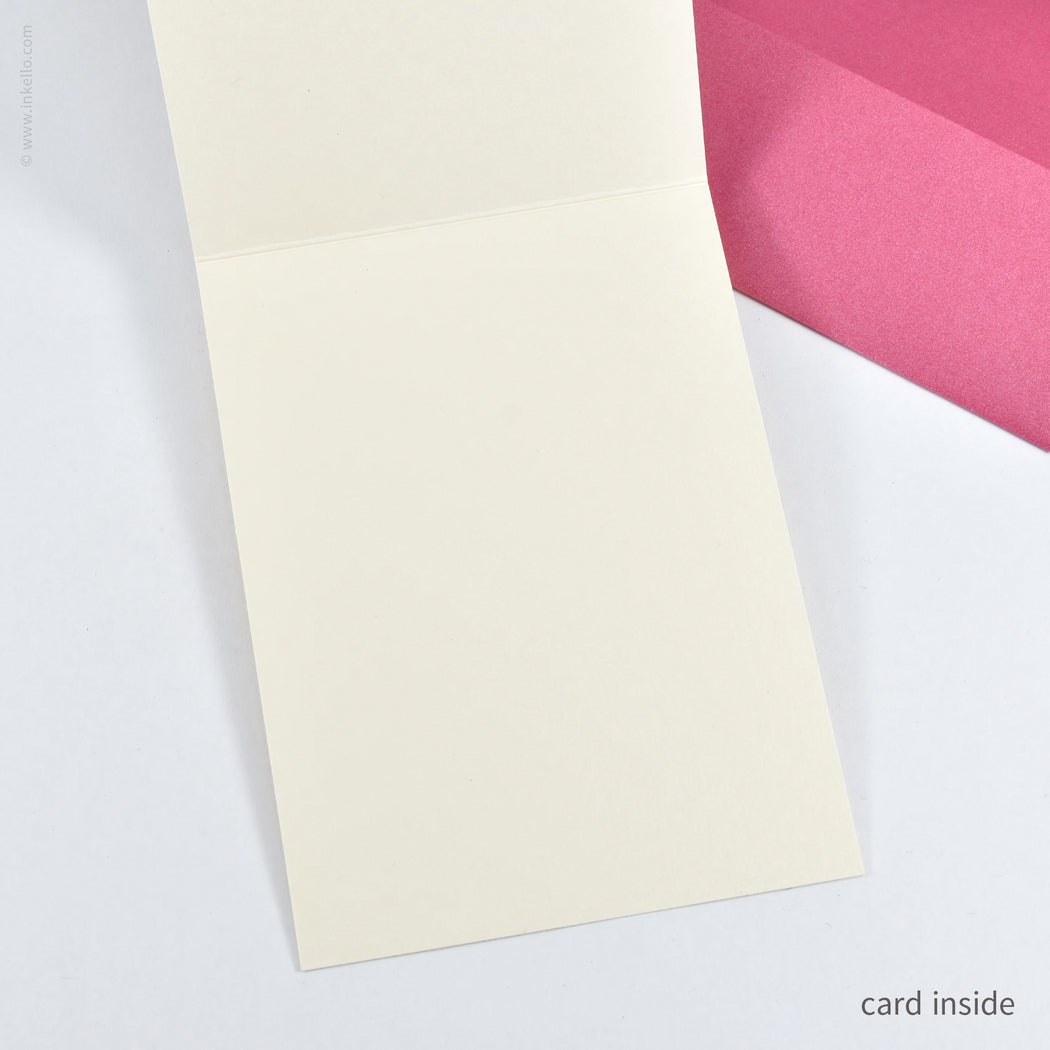 Bright floral mother's day card printed on cream cover-weight paper. Blank inside for your message. Pearlescent pink envelope with square flap.