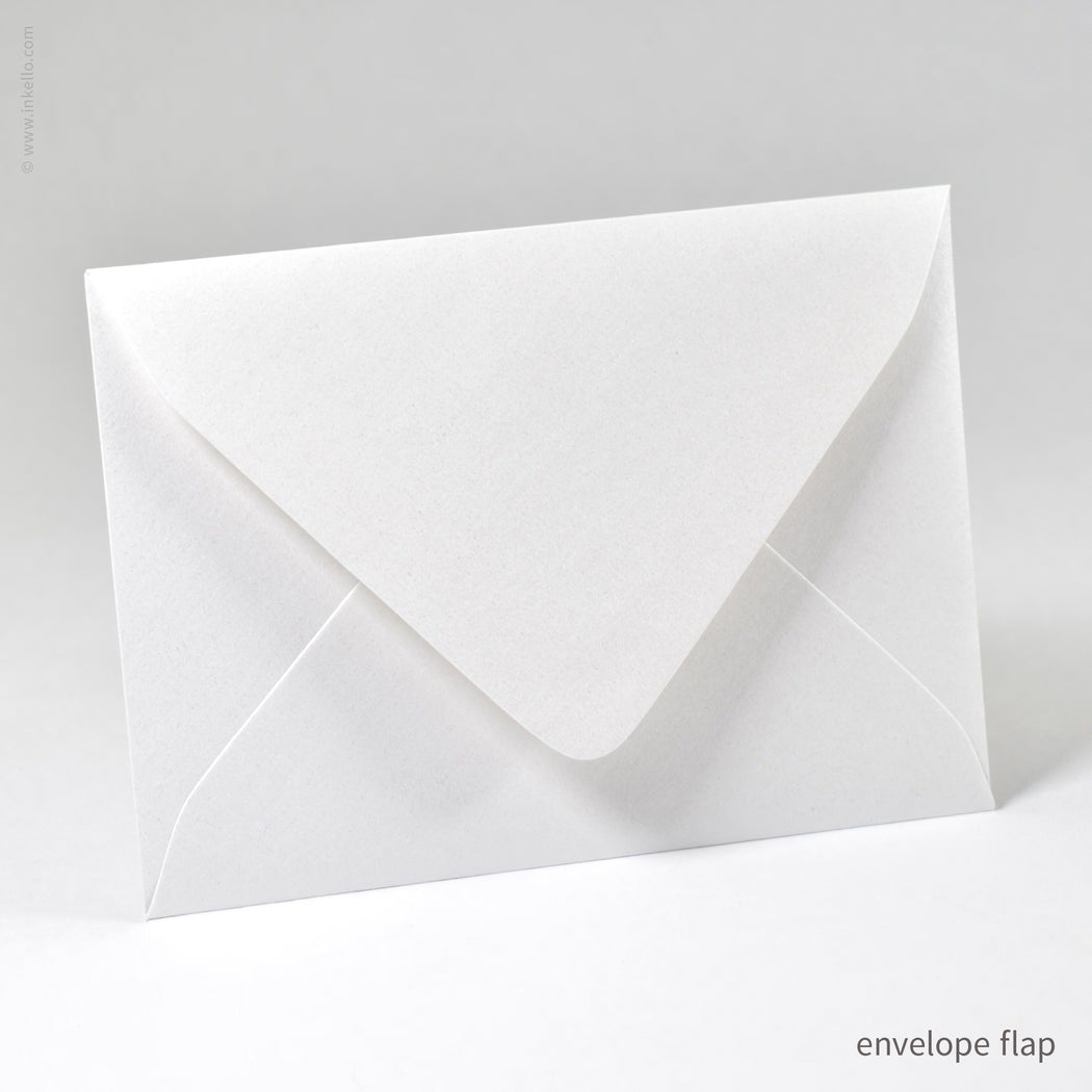 Envelopes: white pearlescent with deeply pointed flap