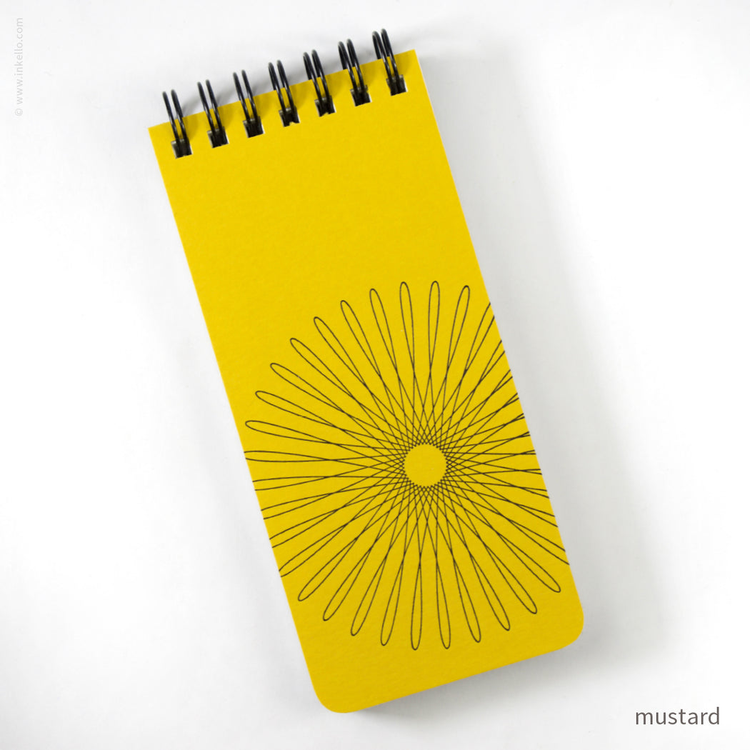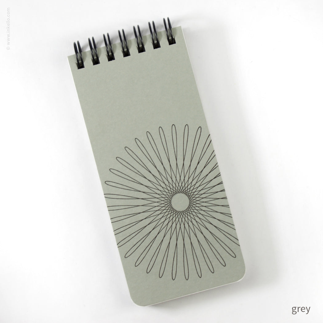 Size: page size is 2-1/2" x 5-1/2", overall notebook including spiral is 2-1/2" x 5-7/8" x 5/8" thick